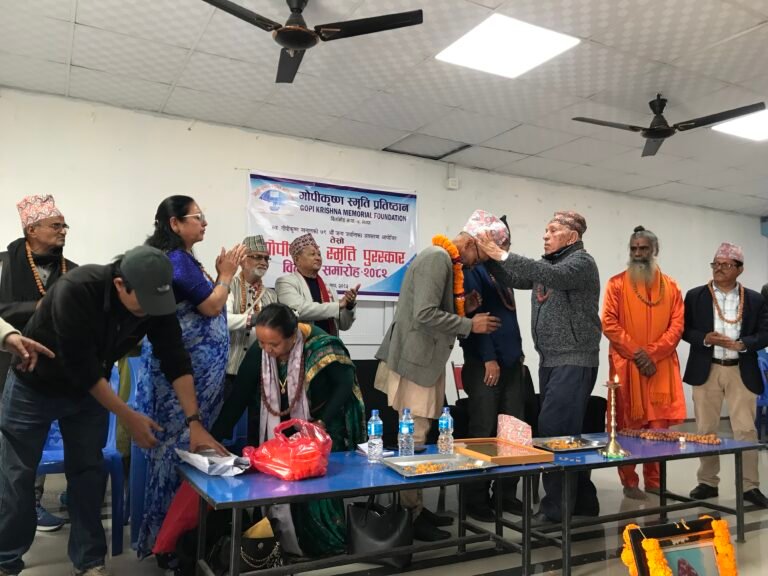 गोपीकृष्ण स्मृति प्रतिष्ठानद्धारा विर्तामोड नगरपालिका वडा नम्बर ७ निवासी खिलप्रसाद सिवाकोटीलाई नगद पचास हजार पाँच रुपैया सहित गोपीकृष्ण स्मृति पुरस्कार २०८२ ले सम्मान गरिएको छ ।