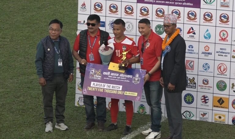 आजको खेल आर्मीको एक तर्फी जस्तै र्हयो । आजको प्लेयर अफ दि म्याच आर्मीका नविन लामा भएका छन् । उनले नगद २५ हजार रुपैया हात पारे ।